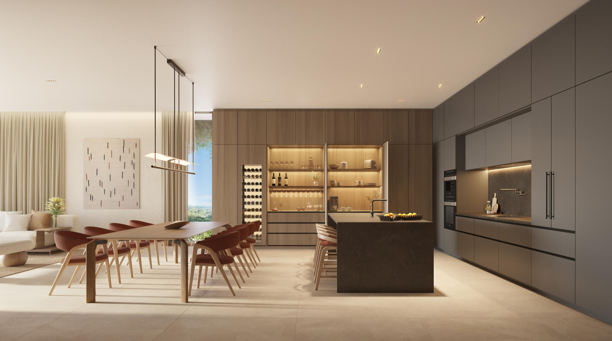 Colette Residences offers 38 boutique homes designed by OSPA, built with natural, warm materials and floor-to-ceiling windows that maximize the indoor–outdoor connection. Interiors feature custom Italian millwork by CESAR and LEMA, mineral-based countertops by INALCO, and large-format flooring by Porcelanosa. Kitchens come equipped with Miele appliances, including integrated refrigerators and 78-bottle wine coolers. Each residence also includes private elevator access and an architectural design focused on spaciousness, serenity, and sophistication.